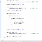 [java] 단순 정렬 / 오름차순 / 내림차순 간단 예제. 가장 단순한 정렬로 교환법 이라는 방법이다. 첫번째를 기준으로 잡고. 그 다음으로 한칸씩 넘어가며 비교를 하되 기준이 되는 수 보다 크거나, 혹은 작거나 하면 값을 바꾼다. (오름차순, 내림차순에 따라 다름) 0번째 1번째 비교. 1번이 크면 값을 교체. 아니라면 0번째와 2번째를 비교. 2번이 크면 값을 교체. 아니라면 0번째...마지막을 비교. 이렇게 한번씩 비교가 끝나면 0번째에는 가작 큰 값이 자리하게 된다. 그리고 다시 1번째를 기준으로 위의 비교를 반복한다. 결과적으로 모든 정렬이 같지만, 비교하는 방식에 따라 종류가 나뉜다. 당연히 if 문에서 부등호의 방향에 따라 오름차순 내림차순으로 바뀐다. 만약, 위의 코드에서 랜덤수를 발생하..