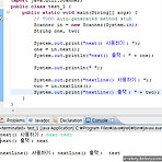 자바 next() 와 nextLine() 함수의 차이. 문자을 입력 받는데 next와 nextLine를 봤습니다. nextLine()는 잘 되는데 next는 안되는 경우도 있고.. 뭔가 다르긴 한데 뭔지 잘 모르겠어서 확인해 봤습니다. 일단 결과부터 이야기 하자면, next()는 공백을 기준으로 반환. nextLine()는 엔터키. 즉 한 줄을 반환 위에서 보이듯이 nextLine는 공백을 포함하고 한 줄 자체를 반환합니다. 하지만 next()함수는 next 다음 공백을 전까지 반환합니다. 그래서 next test 에서 next만 저장이 되는 거죠. 때문에 이를 잘못 사용하면 아래와 같은 문제가 발생합니다. 위 사진은 이 전 코딩과 동일하나 next()와 nextLine()함수의 순서만 바꾸었습니다. 발..