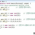 일단 기본적으로 C와는 다른 방법으로 선언해야 한다. int val[5] ; C언어 방식. int[] val = new int [5]; 자바 방식 여기서 중요한 점은 자바에서도 C와 유사하게 선언할 수 있지만 배열의 크기를 지정해서는 안된다. 아래와 같이 선언. int [] val; 자바 방식. int val[] ; C언어 유사 방식. 선언에 크기를 지정하는게 아니라, = new int[5] 같이 따로 해주어야 한다. 배열을 생성하는 3가지 방법을 java 방식과, c언어 유사 방식을 총 6개의 예제를 보여주고 있다. 선언과 동시에 값을 초기화 하는 경우에는 따로 크기를 초기화 할 필요 없이. 자동으로 값을 넣은 만큼 맞춰진다. 값의 초기화 없이 크기만 초기화 한 경우. 그 크기 만큼 모두 0으로 자동 ..